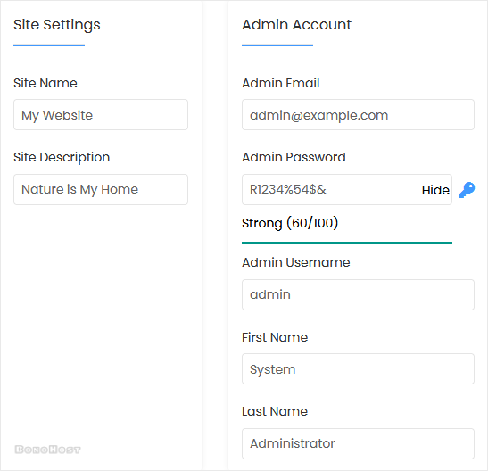 • Admin Email: Your e-mail address.