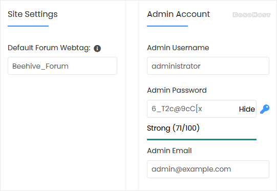 Note: Copy the admin username and password to Notepad. You will need those to access the admin area of your Beehive forum later.