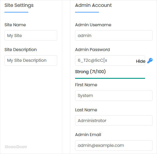 • Admin Username: Your new MovableType username (for security reasons, do not use the administrator or the admin username).
