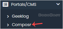 4. On the left side, locate the Portal/CMS category. Click on it and then on the Composr link that appears.