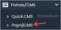 4. On the left side, locate the Portal/CMS category. Click on it and then on the PopojiCMS link that appears.